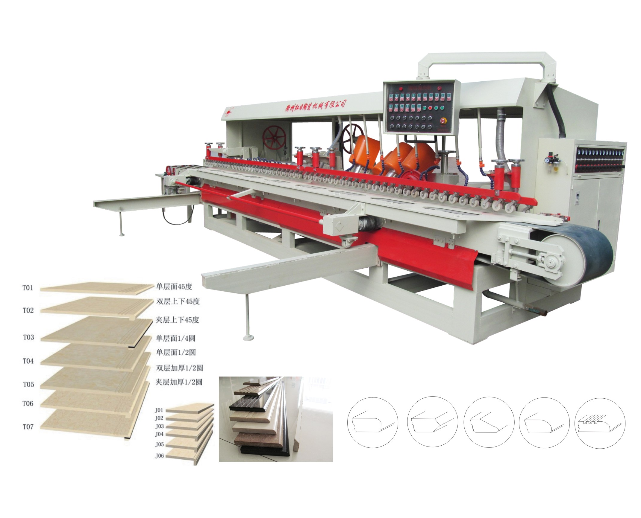 主要用途:磨圓弧邊、45°倒角、拋光、修邊、樓梯開槽。加工地腳線樓梯踏步效果極佳。